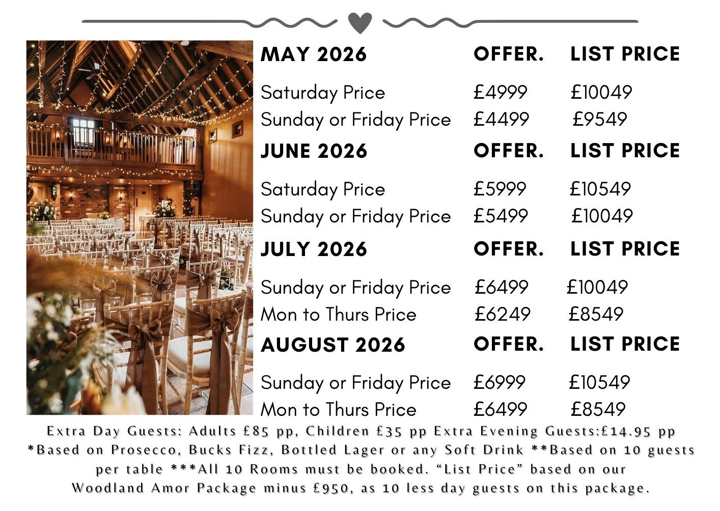 There’s no hidden extras, your Wedding could be just around the corner at a price that’s less than some Barns charge in hire alone!